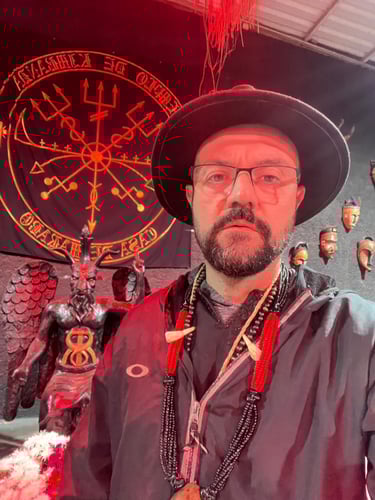 Seu culto a Exu se inicia logo que adentra a religiosidade, perdurando e se fortalecendo a mais de duas décadas, de início como Umbandista (ou como sempre dizia: como Exuzista) e depois se moldando a outras práticas até chegar na Kimbanda, ser iniciado na Casa de Marabô por Tata Kamulepambo, passar por todas as obrigações e se tornar Sacerdote.